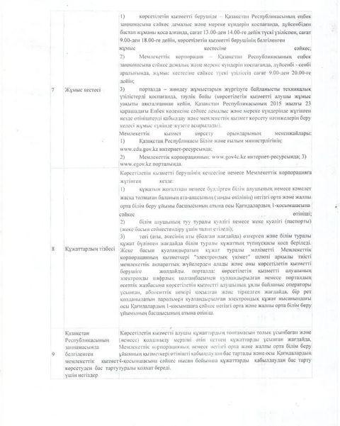 01 май 2023 0 1 2 3 4 5 "Негізгі орта, жалпы орта білім туралы құжаттардың телнұсқаларын беру" мемлекеттік қызмет көрсету стандарты
