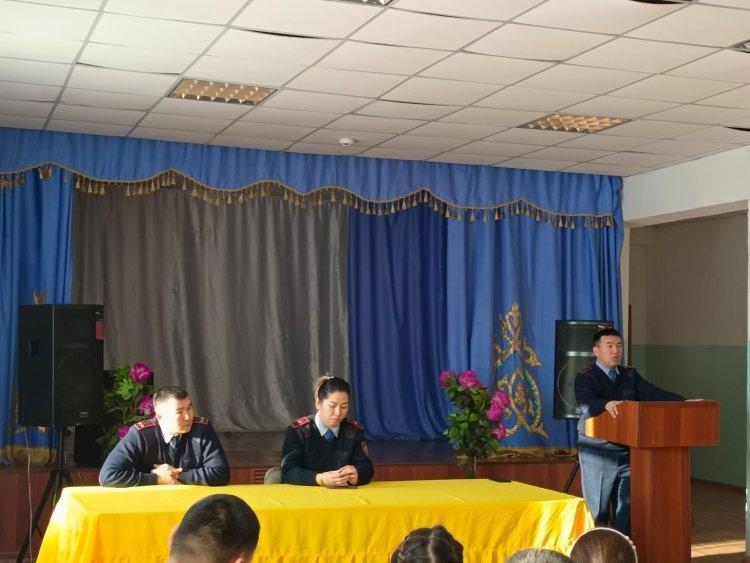 Құқық бұзушылық — бұл қоғамға зиян келтіретін және заң бойынша жазаланатын қоғамға қарсы әрекет. Құқық бұзушылықтың алдын алу — мемлекеттік органдар, жергілікті өзін-өзі басқару органдары, барлық меншік нысанындағы ұйымдар және Қазақстан Республикасының азаматтары жүзеге асыратын, құқық бұзушылықтарды жасауға ықпал ететін себептер мен жағдайларды анықтау, зерделеу, жою арқылы құқықтық тәртіпті сақтауға және күшейтуге бағытталған құқықтық, әлеуметтік, экономикалық ұйымдастырушылық іс-шаралар болып табылады.Жарма аудандық полиция бөлімінің ЖПҚБ кәмелетке толмағандар жөніндегі инспекторлары жастар мен жасөспірімдер арасындағы құқықбұзушылық жайында және бөтеннің мүлкін ұрлау, қарақшылық, алаяқтық туралы баяндап, одан сақ болудың жолдарын түсіндірді. Түнгі уақытта жүрудің жасөспірімдердің өміріне қауіпті екенін ескертті. Сонымен қатар бүгінгі таңда оқу орындарында да, қоғамдық орындарда және сауда- саттық орындарында да бейнебақылау камералары өте көп екендігін, сондықтан қылмысқа барудың соңы жақсылыққа алып келмейтіндігін нақты мысалдар келтіре отырып жеткізді.