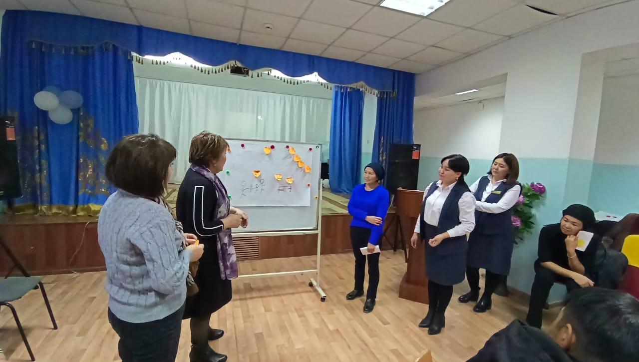 Мектеп директоры - Кайрат Сыдыкович, директордың тәрбие ісі жөніндегі орынбасары - Гүлнұр Жармукановна аяқталып отырған оқу тоқсанындағы білім мен тәрбие, спортта ата-ананың балаға деген қолдауының арқасында мектебіміздің жетістіктерін атап өтті. Мектеп психологы - Алия Мауткановна отбасы құндылықтары бойынша ата-аналарға тренинг жүргізіп, ән орындалды.